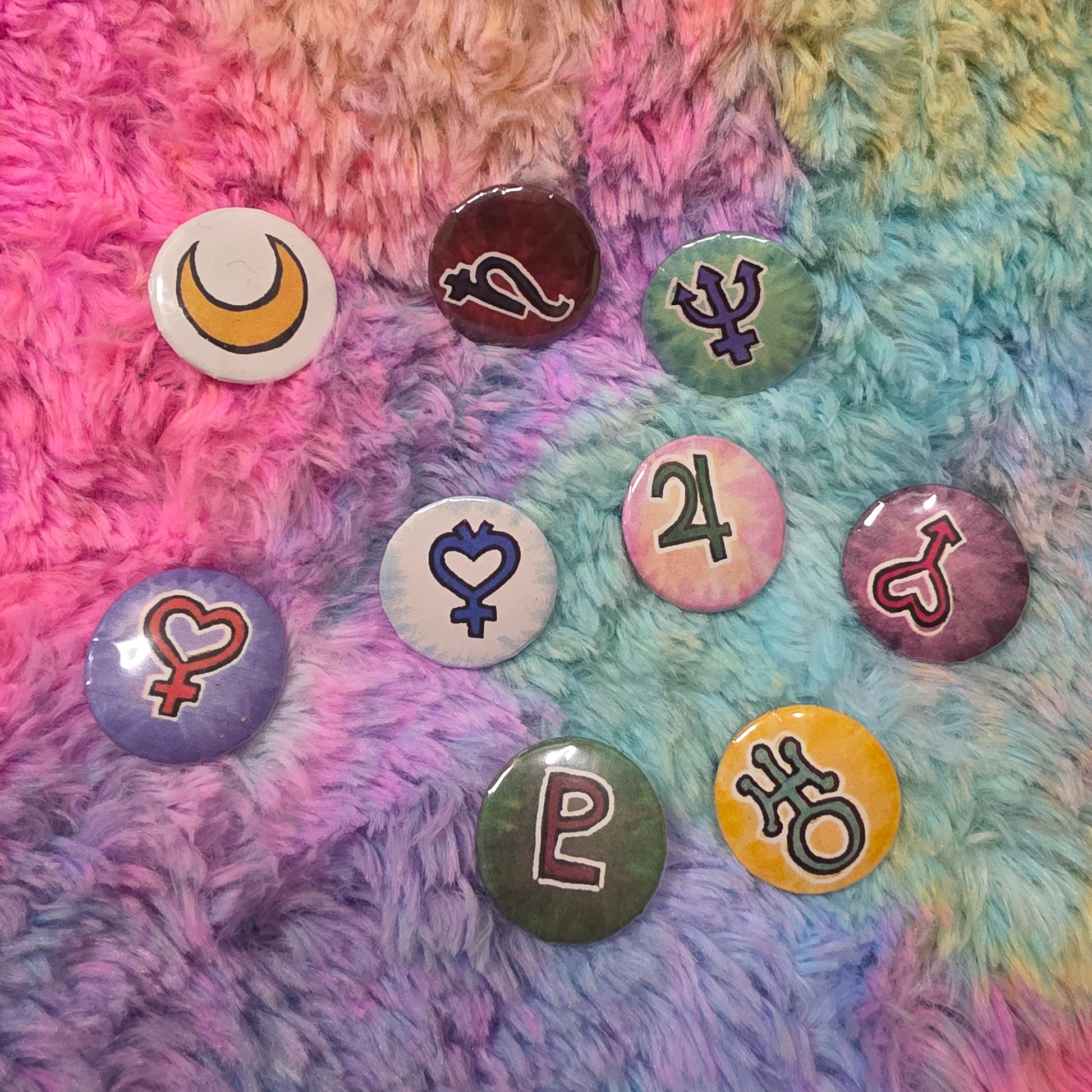 Transform your outfit into something magical with Sailor Scout Buttons. These playful lapel pins feature the iconic Sailor Moon and her inner and outer senshi, each adorned with their own planetary symbol. Elevate your look with these quirky accessories.