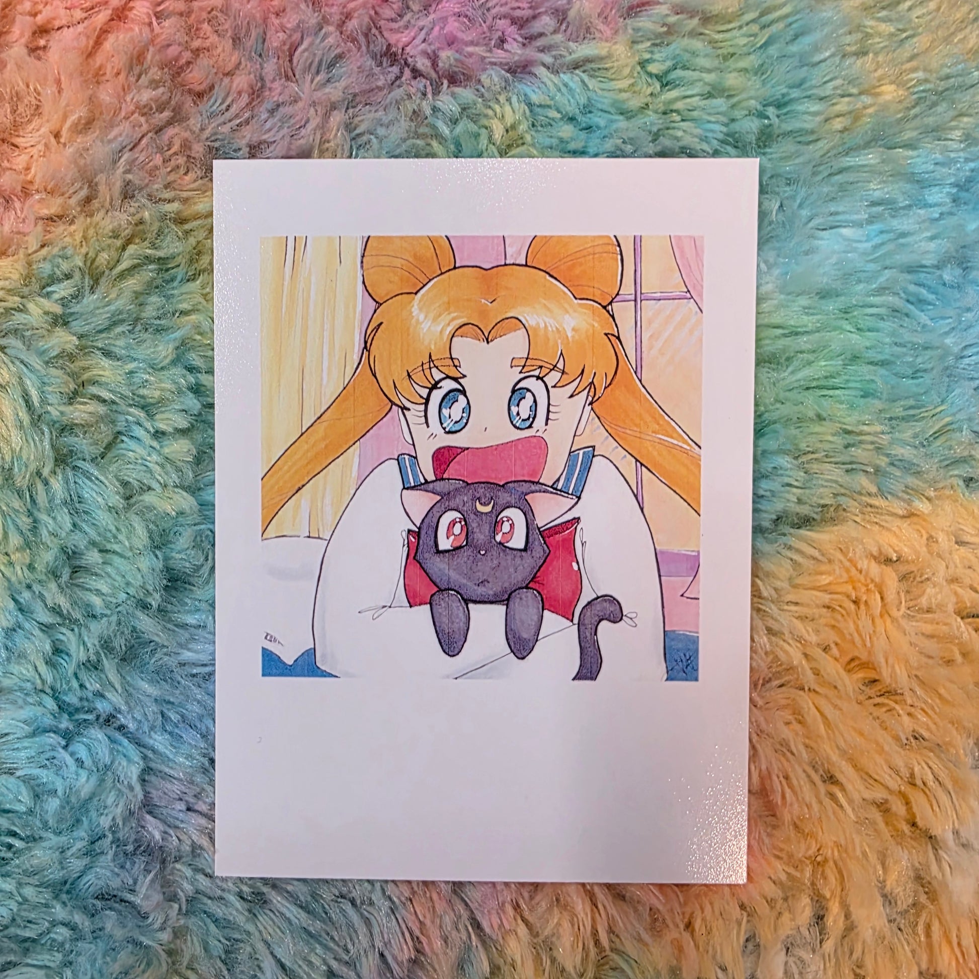 Capture magical moments with the Usagi Polaroid. Featuring the beloved Usagi and her trusty feline companion Luna, this Polaroid print comes in the classic 3"x4" size. Forget ordinary photos, embrace the whimsical and fun with the Usagi Polaroid!